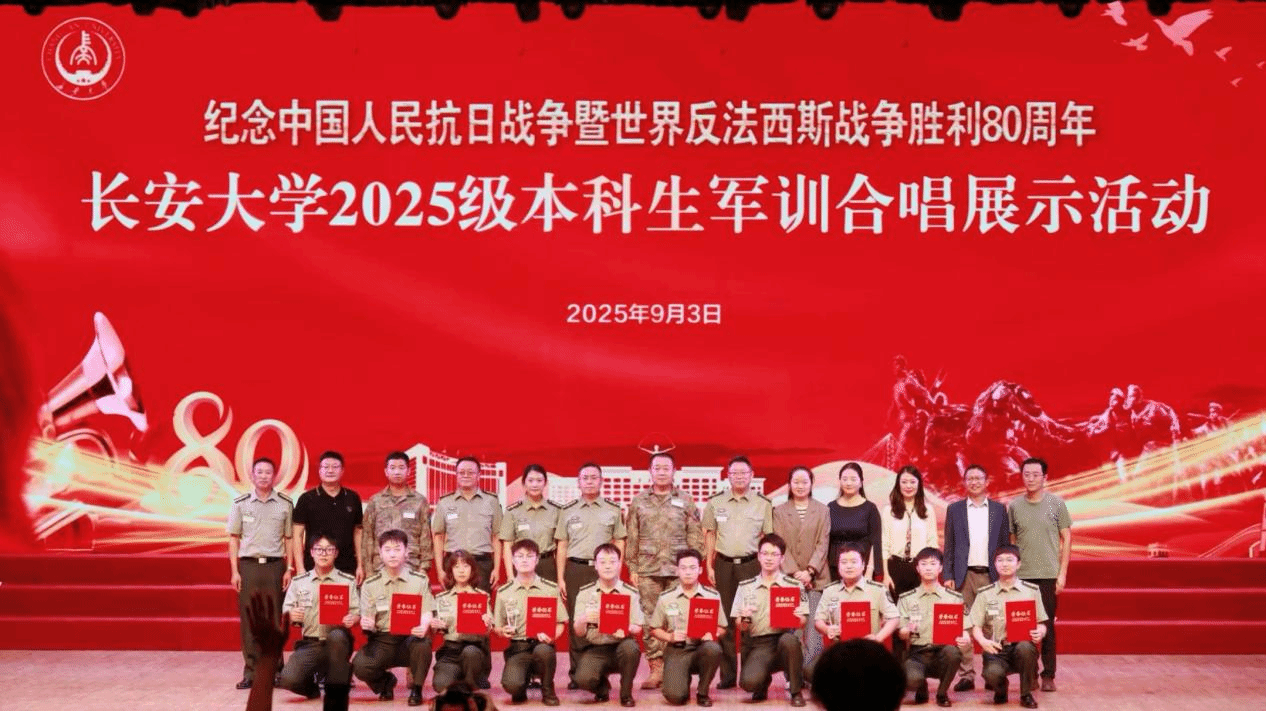 9月3日晚,学校2025级本科生军训合唱展示活动在北校区长安文化艺术中心大礼堂举办。军训旅机关相关领导出席活动,学校统战部、机关党委、招生就业处、工会、艺术教育中心有关负责人及承训部队教导员担任评委,全体参训师生参加并观看了本次活动。