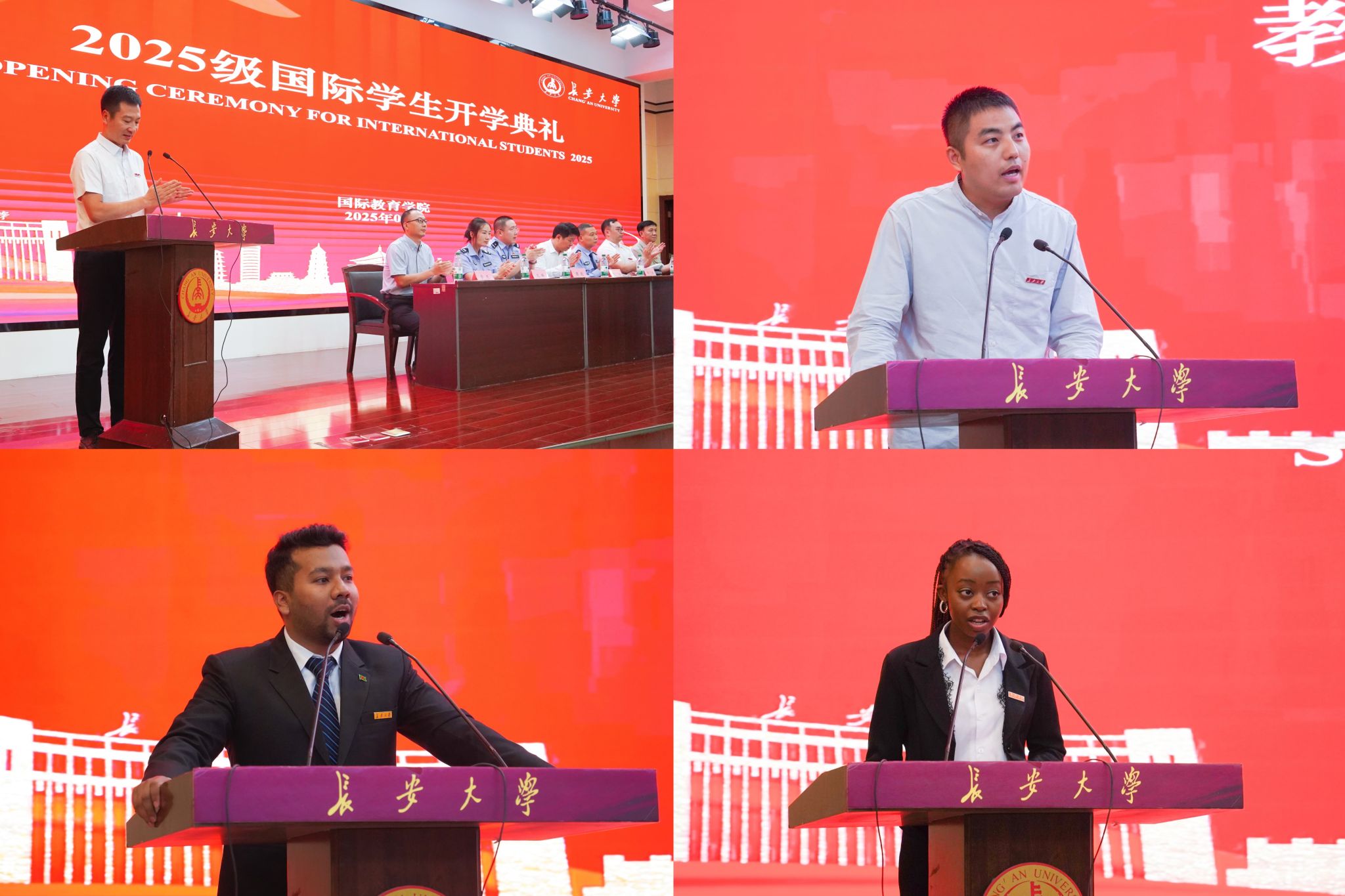 学校国际教育学院院长张伟,西安市公安局出入境管理局外管一科科长谭政,西安市公安局交管支队碑林大队副大队长张飞普,交管碑林大队事故处理与安全监管中队副中队长严凤佳,碑林区司法局普法科科长沈琳,学校教务处副处长陈永楠,研究生院副院长步龙,保卫处副处长柴启东,西安市出入境管理局、交管碑林大队、碑林区司法局警官,相关二级学院负责人、教师代表,国际教育学院全体教职工及2025级新生和老生代表600余人分别在两个会场参加典礼。典礼由国际教育学院副院长吕卫东主持。