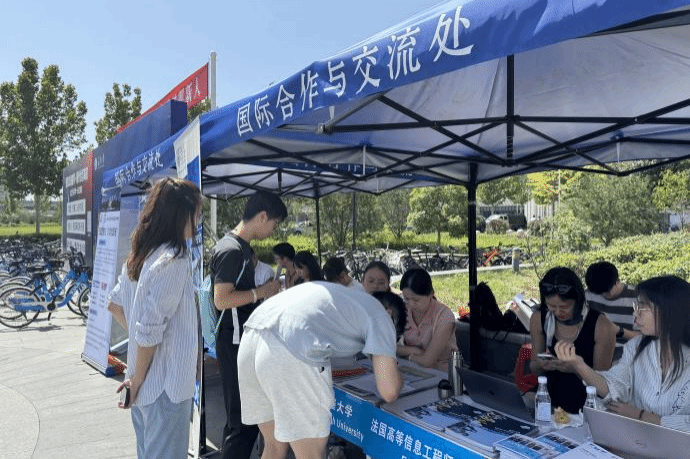 本次活动,在北校区采芹苑食堂广场设线下展位,详细介绍了爱尔兰都柏林大学、美国乔治梅森大学、英国布里斯托大学、英国赫瑞瓦特大学、英国拉夫堡大学、法国高等信息工程师学院(EPITA)、法国高等矿业电信学校(IMT)、英国密苏里大学堪萨斯分校等外方院校及赴美带薪实习项目,为师生提供直接沟通咨询渠道;外方院校代表线上线下介绍各自院校的特色交流项目,并与师生进行实时互动;国际处相关负责人还通过视频及宣讲会开幕式现场解读,明晰学生出国(境)交流政策,解答资助、申请、审批等热点问题。