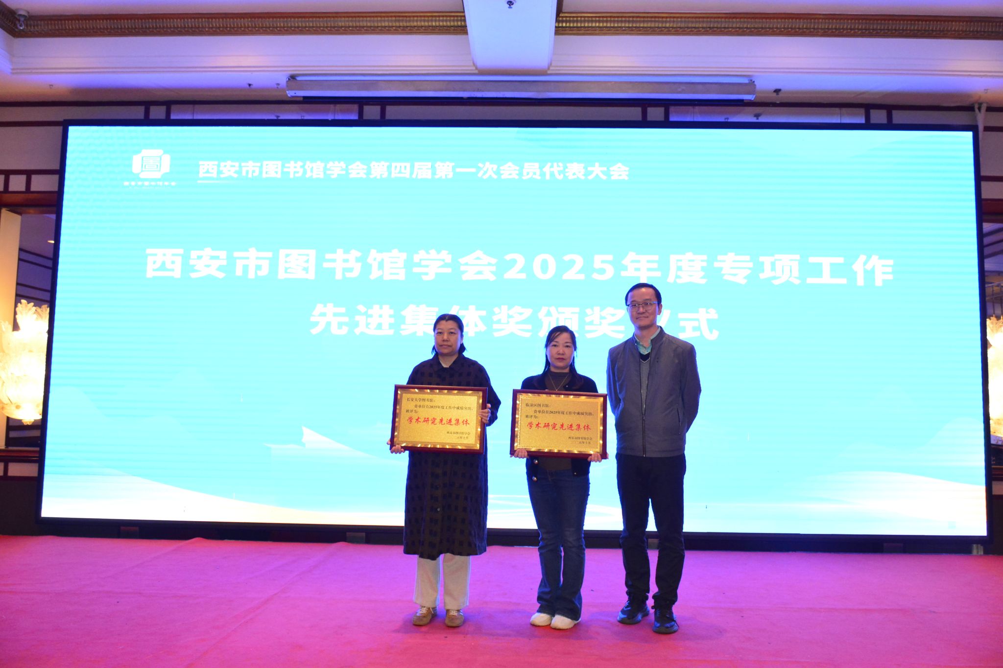 10月14日,西安市图书馆学会召开第四届第一次会员代表大会。会议颁布了《西安市图书馆学会关于表彰2025年度专项工作先进集体的决定》与《西安市图书馆学会第三次图书情报学学术成果评奖结果通知》文件。77779193永利官网图书馆荣获“2025年度西安市图书馆学会学术研究先进集体”荣誉称号,并荣获图书情报学学术成果奖一等奖1项、二等奖2项、三等奖3项。