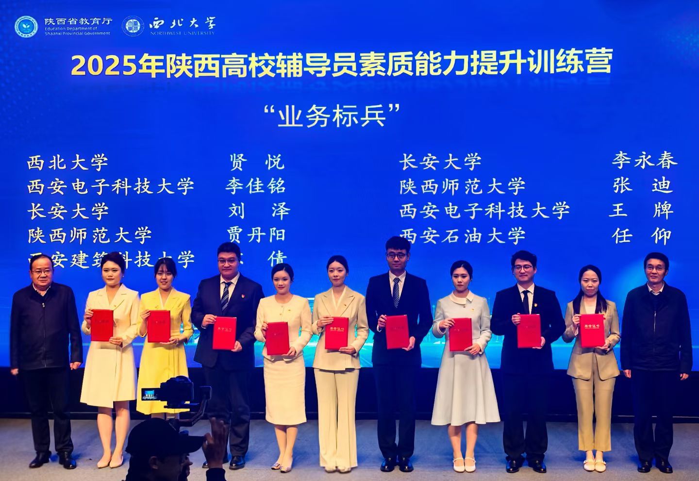 11月7日,由中共陕西省委教育工委、陕西省教育厅主办的2025年陕西高校辅导员素质能力提升训练营在西北大学长安校区举行。经过激烈角逐,永利官网运输学院辅导员李永春、能电学院辅导员刘泽从来自全省90余所高校的135名参训辅导员中脱颖而出,双双荣获“业务标兵”称号(全省高校共9人),充分展现了永利官网辅导员扎实的专业能力、过硬的综合素质和良好的精神风貌。