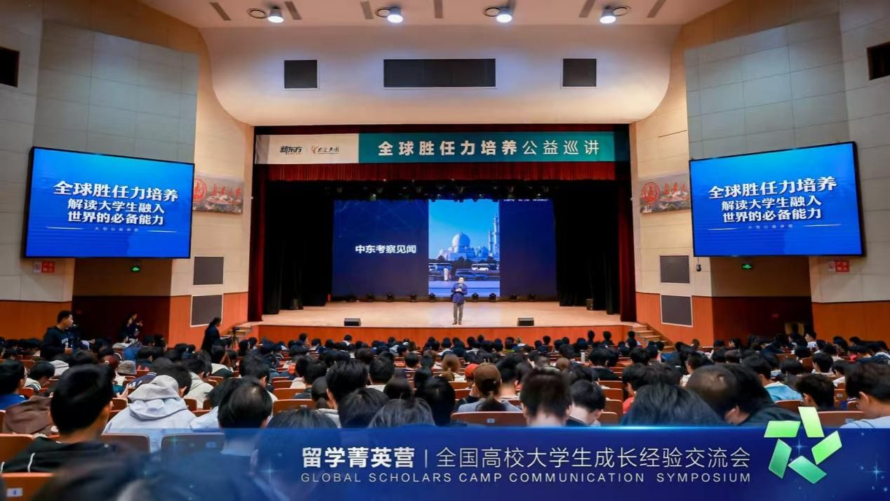 孙涛聚焦人工智能时代下的全球化人才素养,指出创新思维、AI与大数据、领导力等技能将成为2030年核心竞争力。他结合自身海外求学经历,详细解读了“能-人-自-解-压”素质模型,向同学们展示了大学生融入世界的必备能力,包括自我管理、人际关系、压力承受、文化理解和能力基础等五个方面。孙涛以交叉学科案例、海外学子成长路径等鲜活素材,深入浅出地解析了全球胜任力的内涵,并鼓励同学们深耕专业学习、不断开阔思路眼界、全面提升国际竞争力,做好职业规划并勇于实践,将理想变为现实。