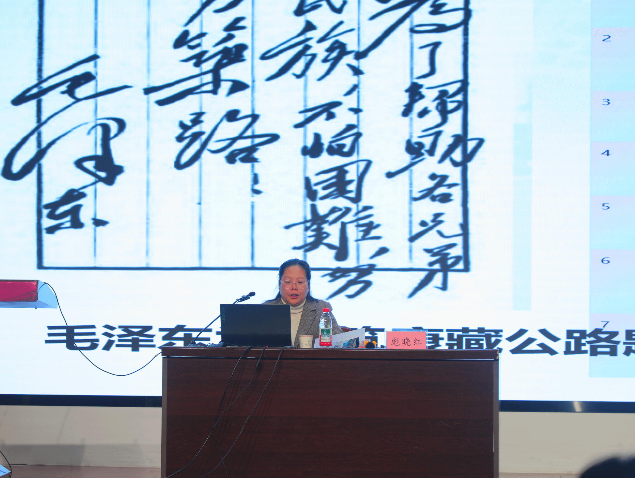 彪晓红教授以“弘扬‘两路’精神,做交通强国的时代先锋”为主题,从“修筑入藏公路:新中国的一号工程”“‘两路’精神的深刻内涵”“‘两路’精神的理论特质”“‘两路’精神的现实意义”以及“当代青年如何传承和弘扬‘两路’精神”五个方面展开,讲述了“两路”精神是实现中华民族伟大复兴的强大动力、书写交通强国的不竭动力、培养新时代交通精神的不竭源泉。同时,彪晓红教授号召研究生骨干们要在中国式现代化建设中挺膺担当,加强个人修养,勇担时代使命。