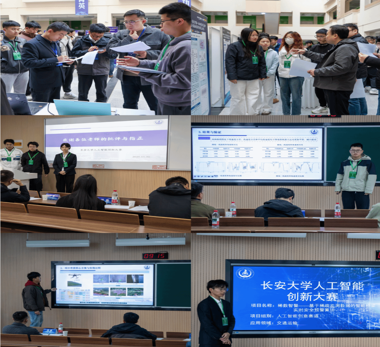 在决赛答辩环节中,各支队伍围绕项目背景、算法模型、创新点及应用价值等方面进行了全面阐述。面对评委们专业且犀利的提问,选手们沉着应对,逻辑清晰地予以解答,充分展现了长大学子扎实的专业功底、敏锐的创新思维和出色的综合素养。