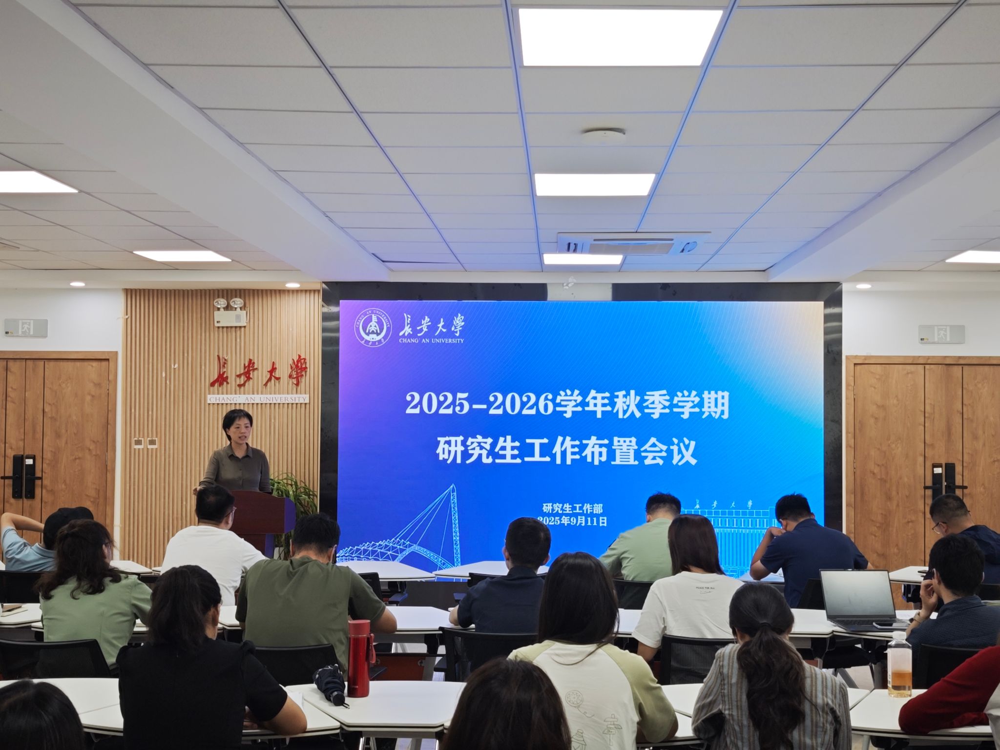 研究生工作部副部长王妍结合新学期研究生工作总体部署,就做好秋季学期研究生管理服务工作提出三点要求。一是加强研究生思想政治教育,做好“新生教育工程”系列部署及总结,常态化开展思政育人相关工作;二是严格落实立德树人根本任务,及时发现并解决研究生在学业、科研、生活等方面遇到的困难;三是深化导学思政引领与专业培养融合,推动导师在科研指导、论文答辩等环节同步开展理想信念引导,将家国情怀、学术诚信融入研究生培养全过程。