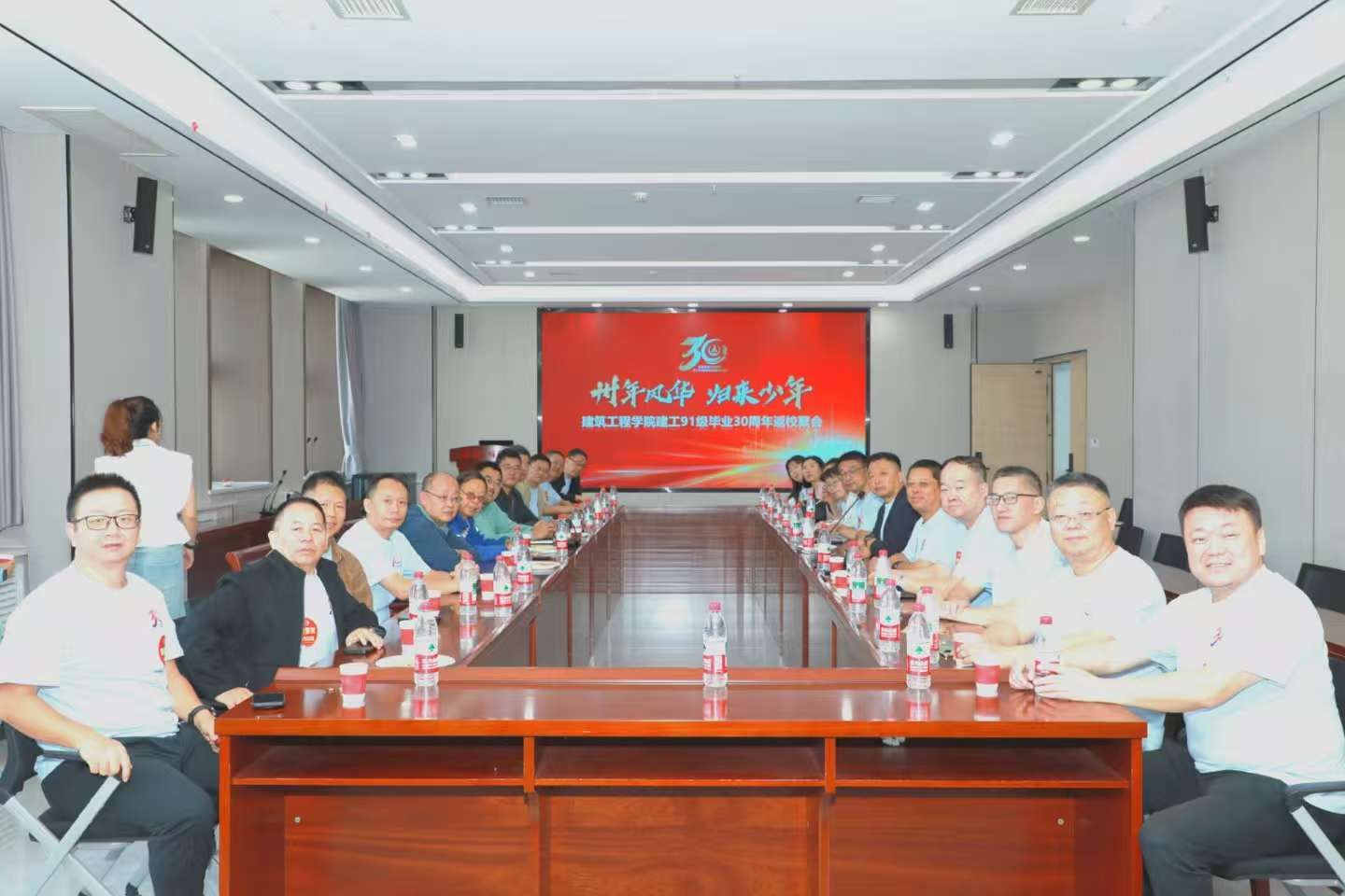 9月20日,建工学院1991级校友返校,在北校区学院第一会议室召开师生座谈会,学院党委书记吴涛,党委原书记王公盈,党委副书记、副院长孟庆鹏,教师代表苗晓瑜和院办主任陈英参加座谈会。校友张焕涛主持座谈会。