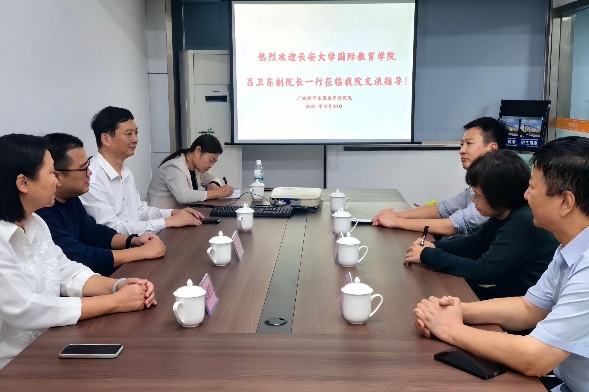 在广西现代东盟教育研究院,院长刘浩详细介绍了研究院在东盟教育研究、国际学生培养及跨文化交流等领域的工作成果,重点分享了其在东盟各国教育市场调研、招生渠道搭建等方面的实践经验。双方围绕东盟国际学生招生合作、联合开展教育交流活动等潜在合作方向展开热烈交流,双方均表示进一步加强沟通对接,细化合作方案,充分发挥各自资源优势,共同推动东盟地区国际教育合作迈上新台阶。