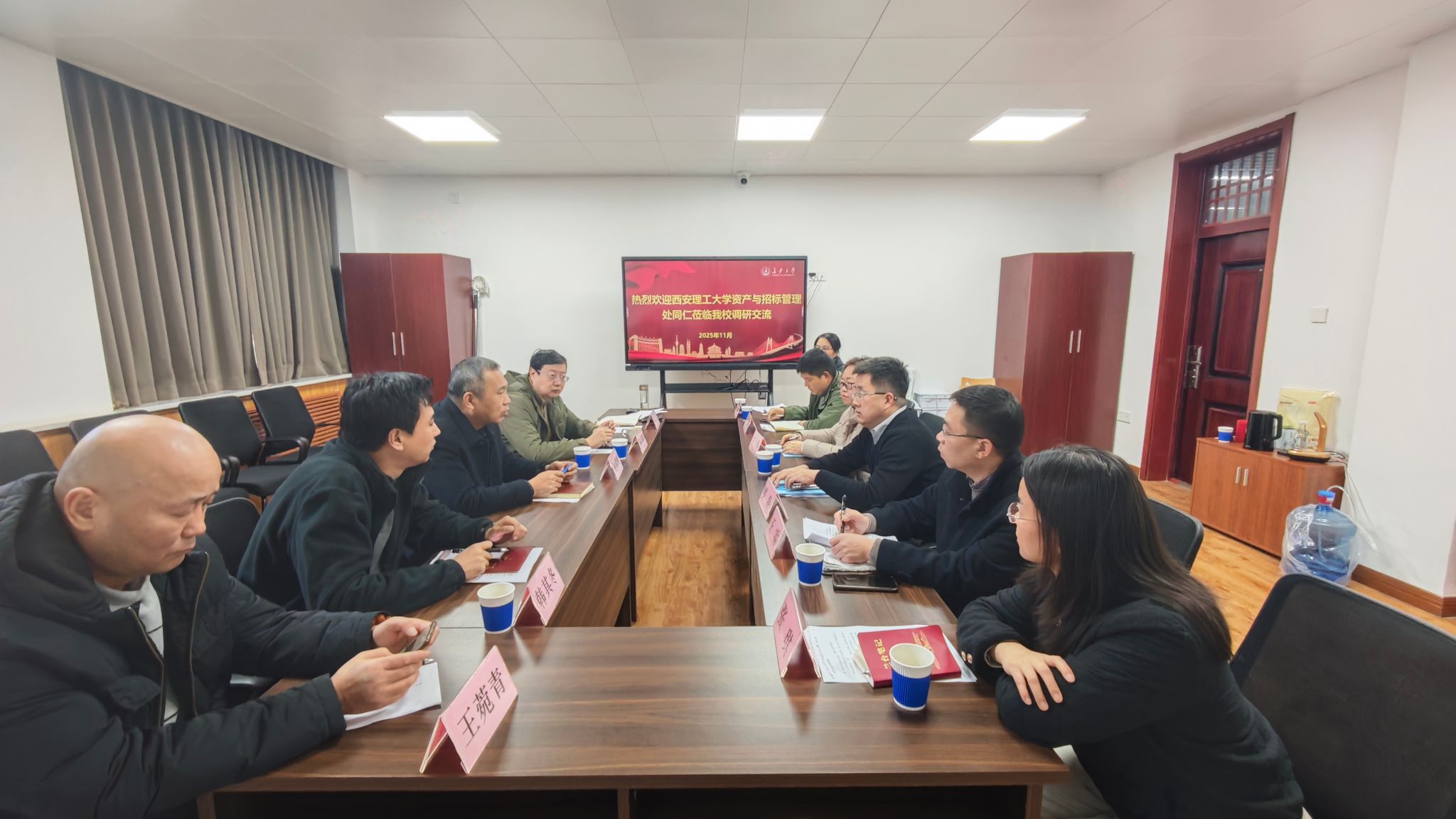 11月18日至19日,西安理工大学资产与招标管理处处长罗磊一行6人、西南民族大学采购与招标管理中心主任郭镭一行3人分别来永利官网调研交流。采购与招标管理办公室全体成员参加座谈会。交流座谈会由采购与招标管理办公室主任赵武刚主持。