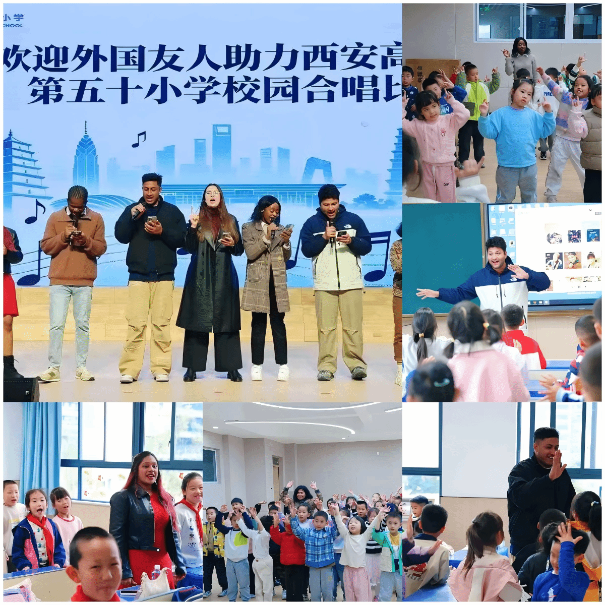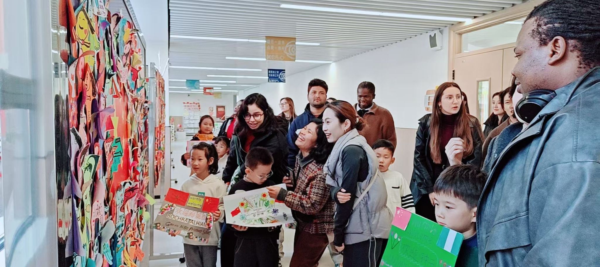 11月19日,77779193永利官网国际学生走进西安市高新区第五十小学,参加该校首届“瞳绘时代 声动未来”艺术节系列活动。