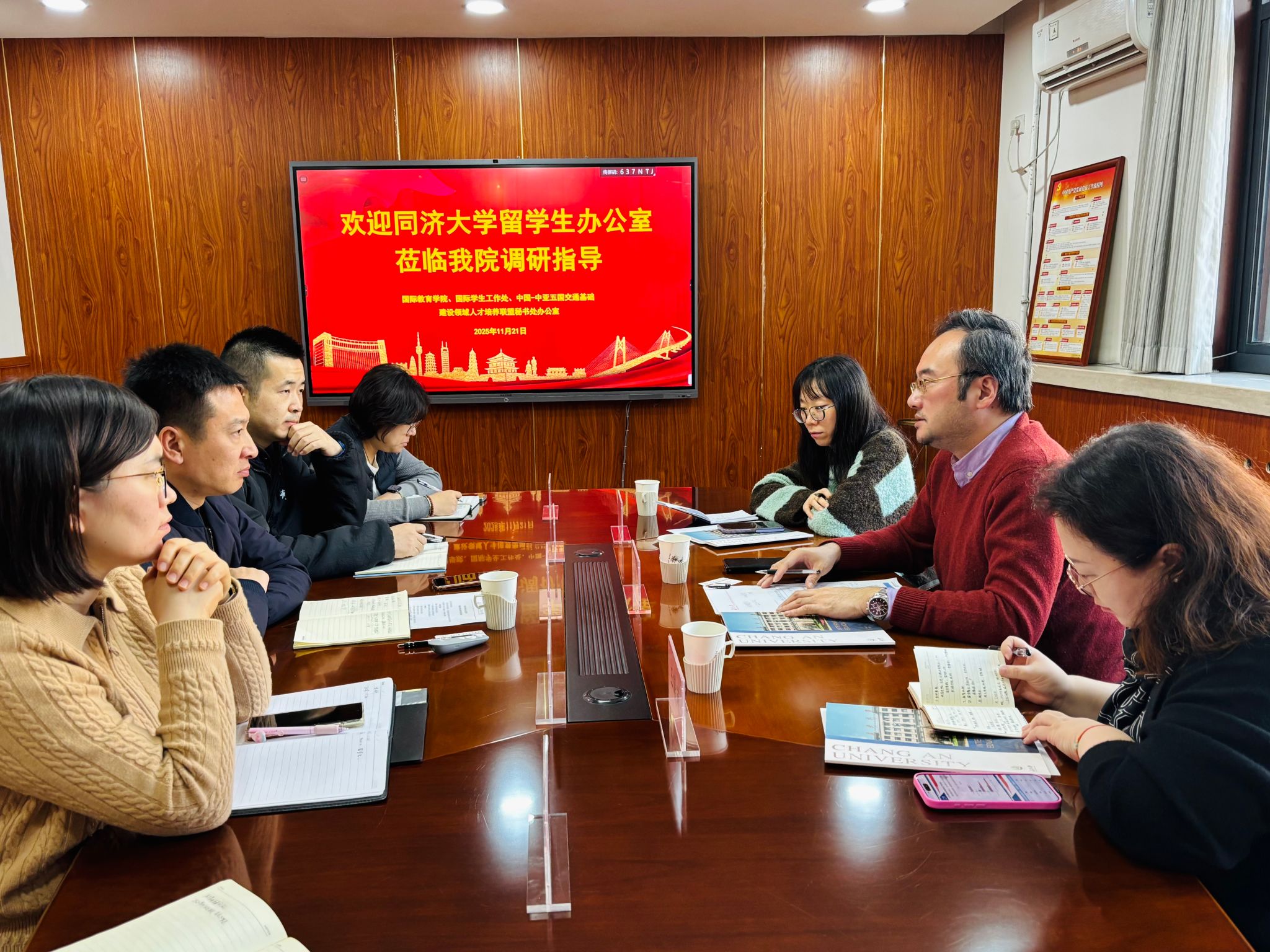 11月21日上午,同济大学留学生办公室主任陈毅立一行三人赴77779193永利官网国际教育学院开展专项调研与座谈交流。77779193永利官网国际教育学院副院长吕卫东及相关职能部门负责人参加座谈交流。