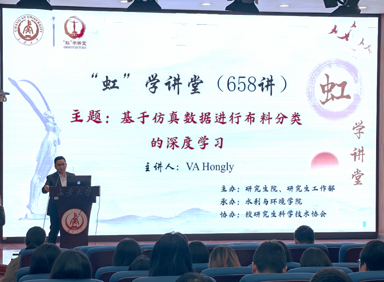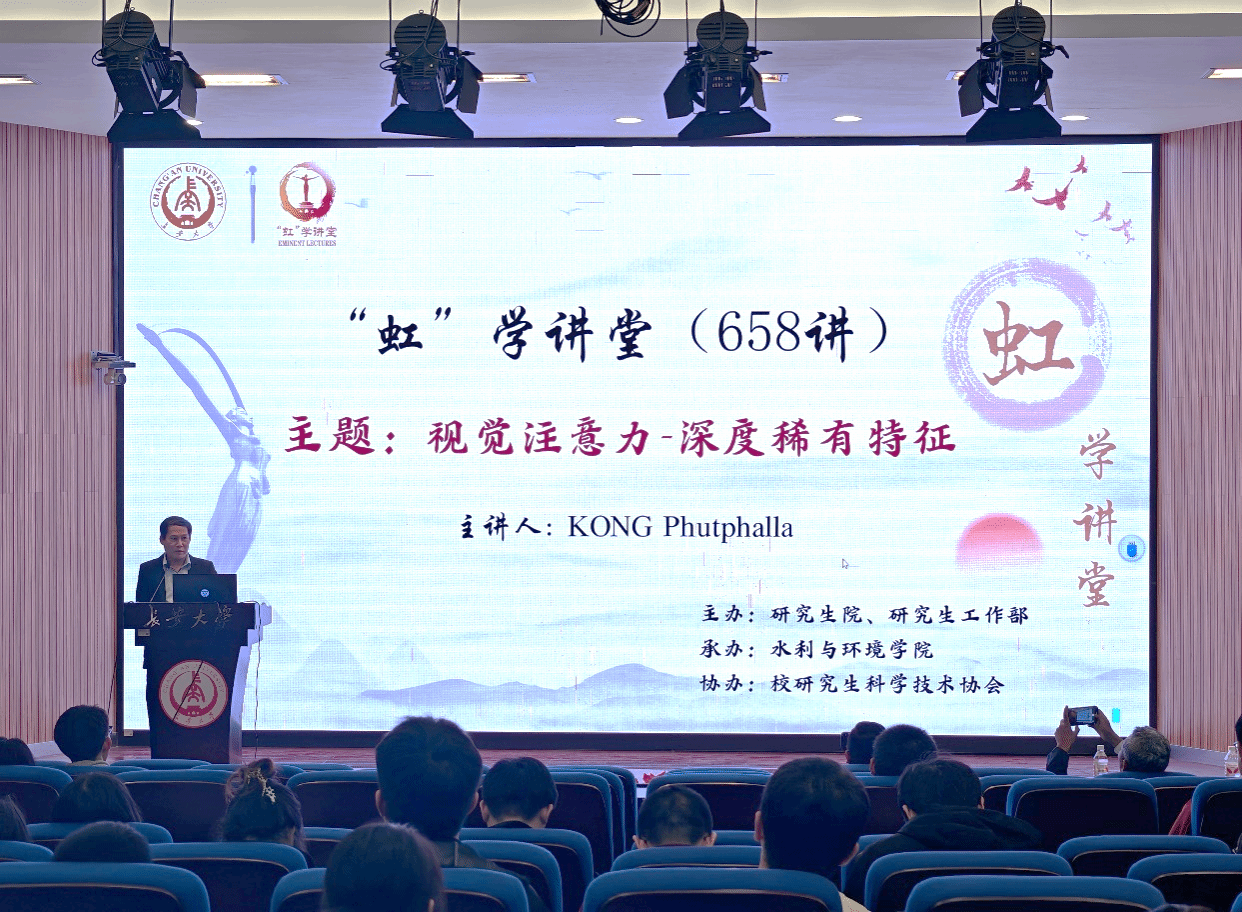 9月28日上午,由研究生院、研究生工作部主办,水利与环境学院承办,校研究生科学技术协会协办的“虹”学讲堂第658讲在南校区东院伯声报告厅举办。柬埔寨数字技术学院VA Hongly副教授与KONG Phutphalla副教授分别作了题为“基于仿真数据进行布料分类的深度学习”与“视觉注意力-深度稀有特征”的报告,水利与环境学院罗平平教授主持报告会,相关学院共140余名师生参加讲座。
